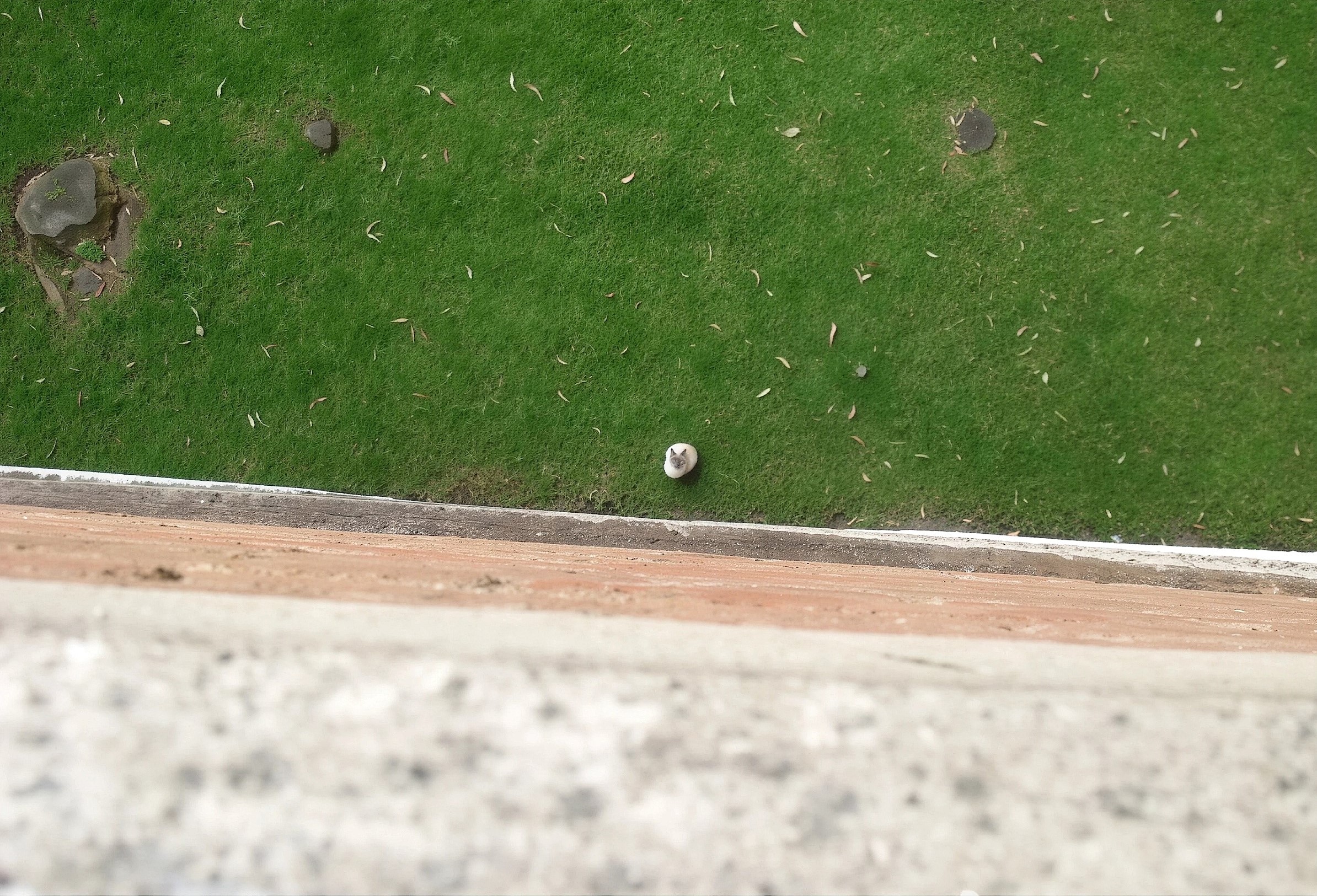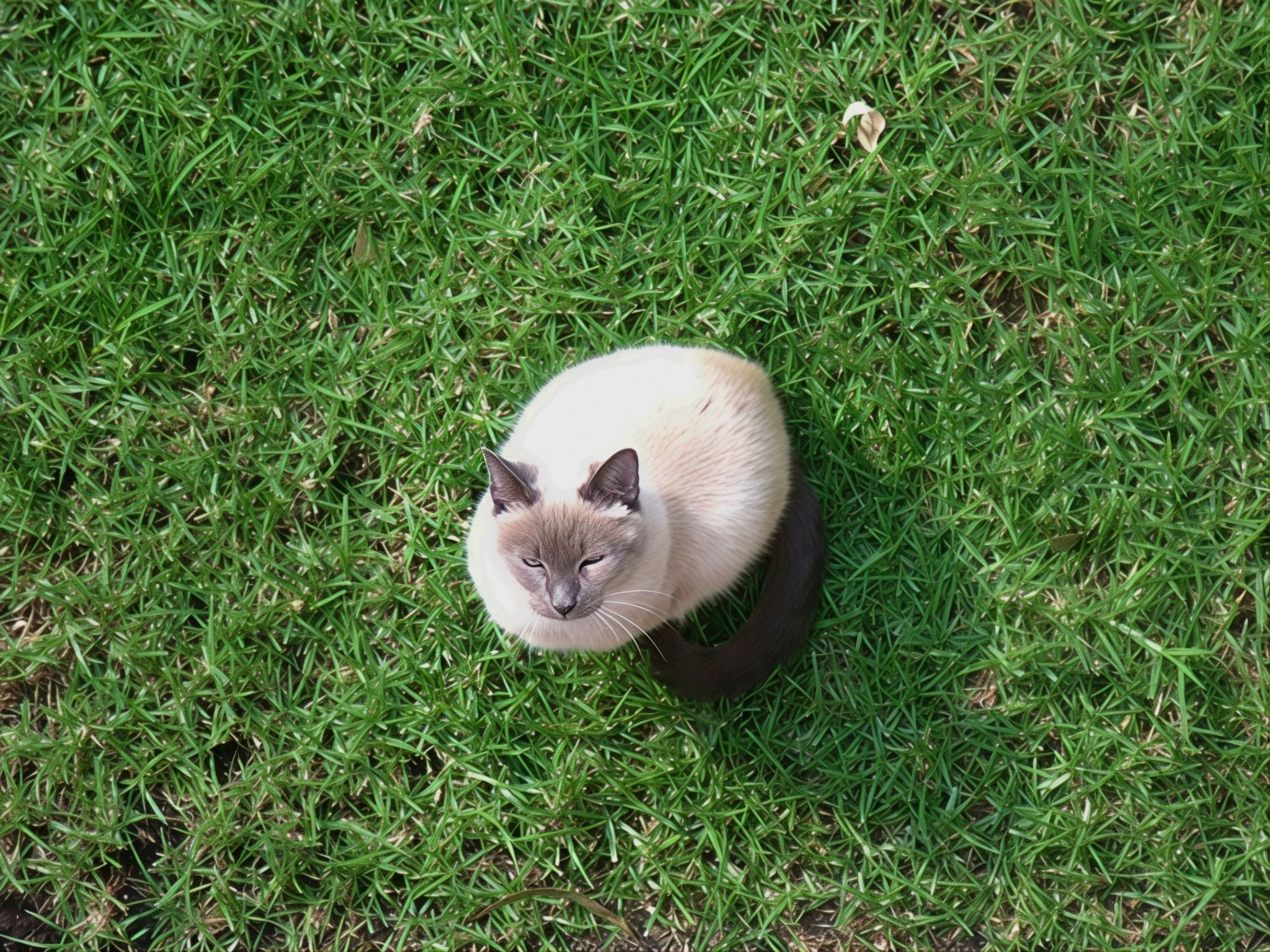 Siamese cat gazes upward with curiosity, framed from a high vantage
