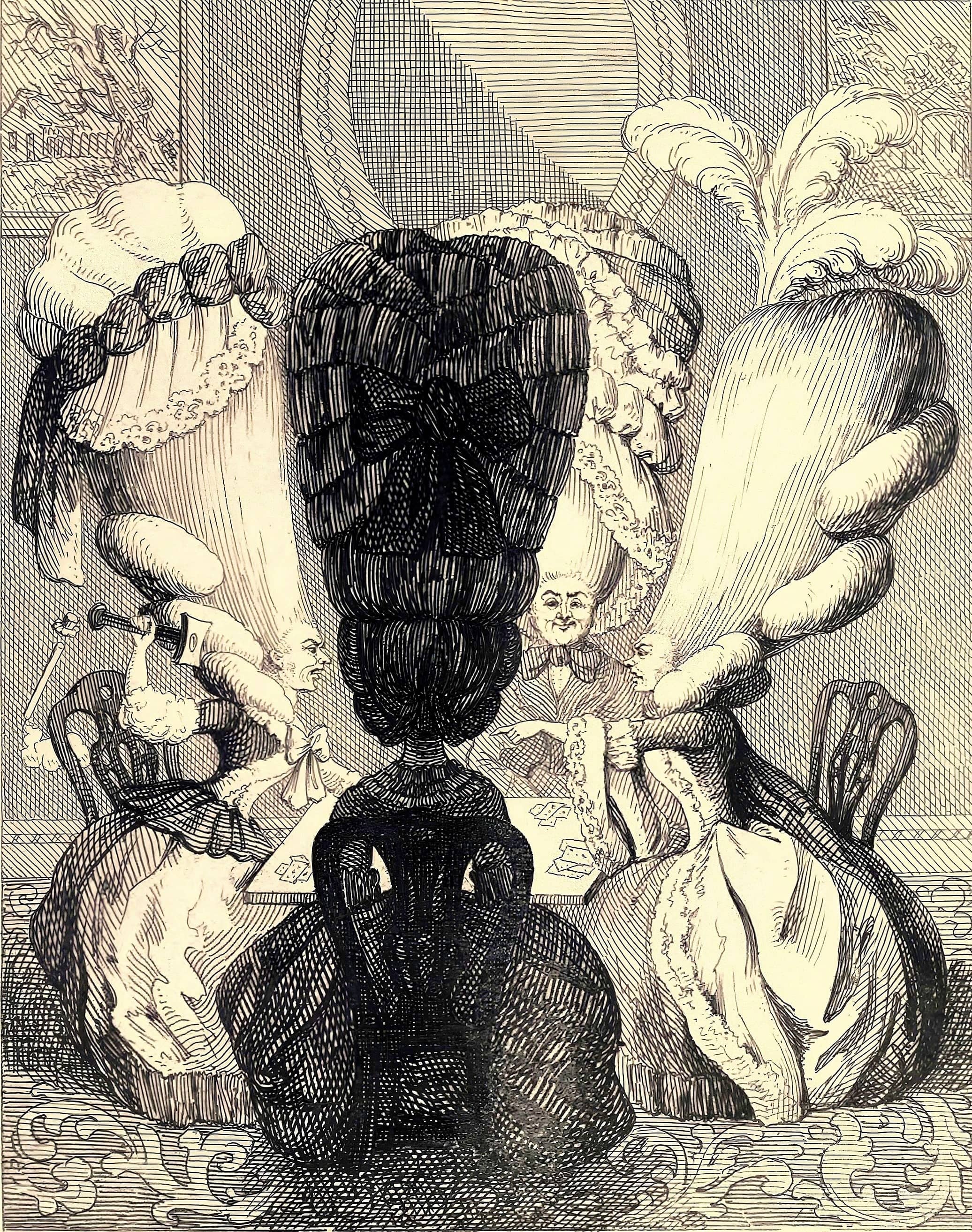 sheer absurdity of their towering hairstyles—ornate piles of curls,
