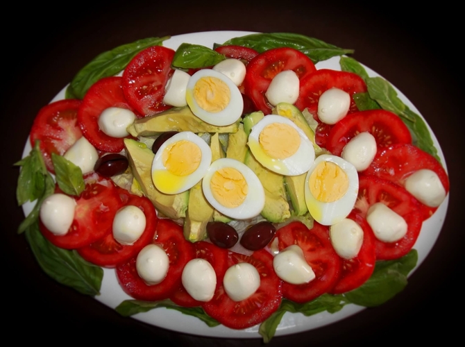 Italian basil, egg, and mozzarella salad