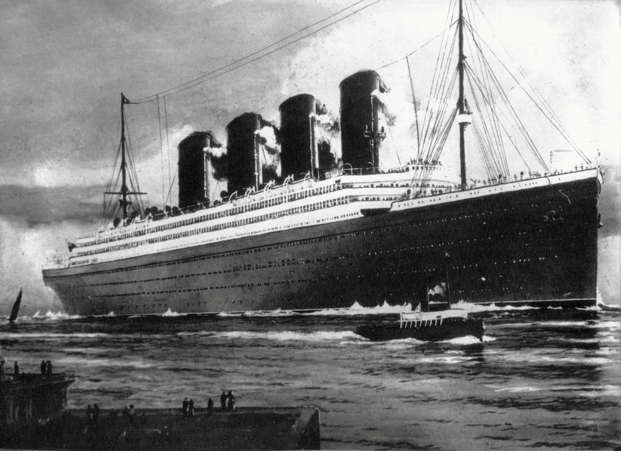 maiden voyage across the Atlantic. Its immense hull dominates the