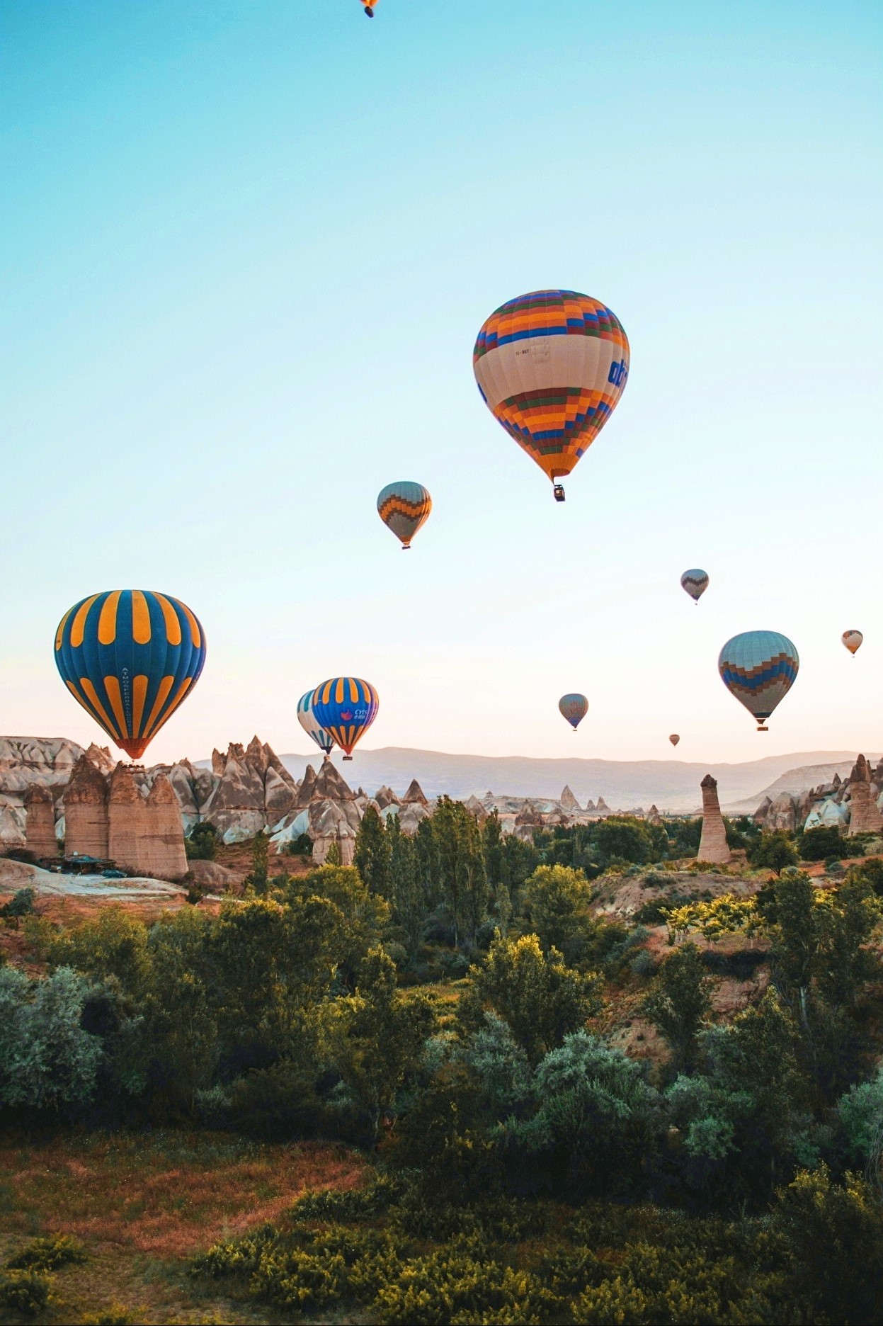 Hot-air balloons over Cappadocia Turkey