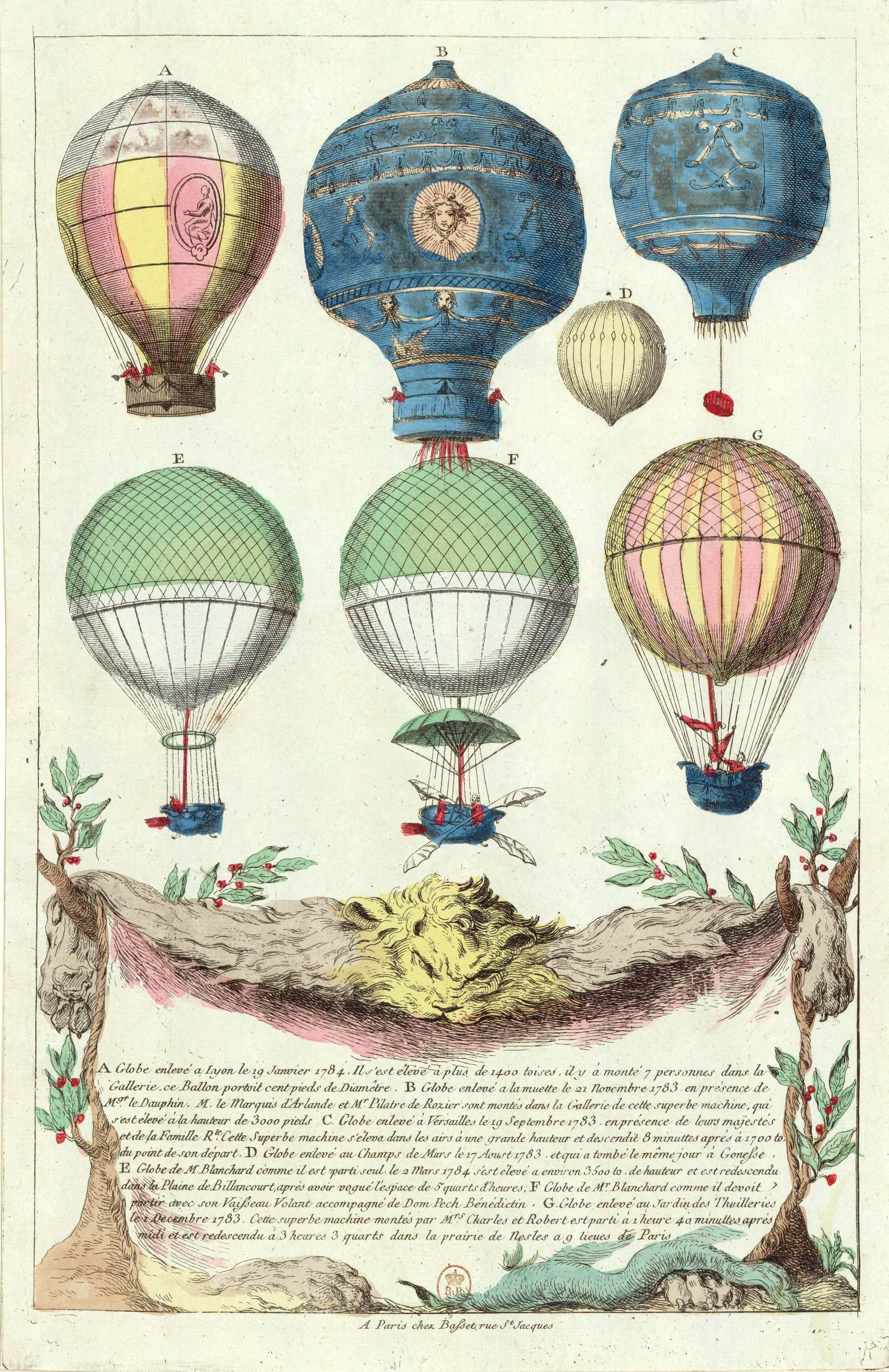 Hot-air balloons Print, published in Paris chez Basset rue St. Jacques, 1784(?)