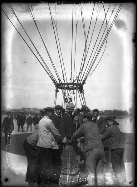 Hot-air balloon at Issy-les-Moulineaux With pilots M. Perisse, Henri Contenet and Edouard Nieuport. Agence Rol, 1911