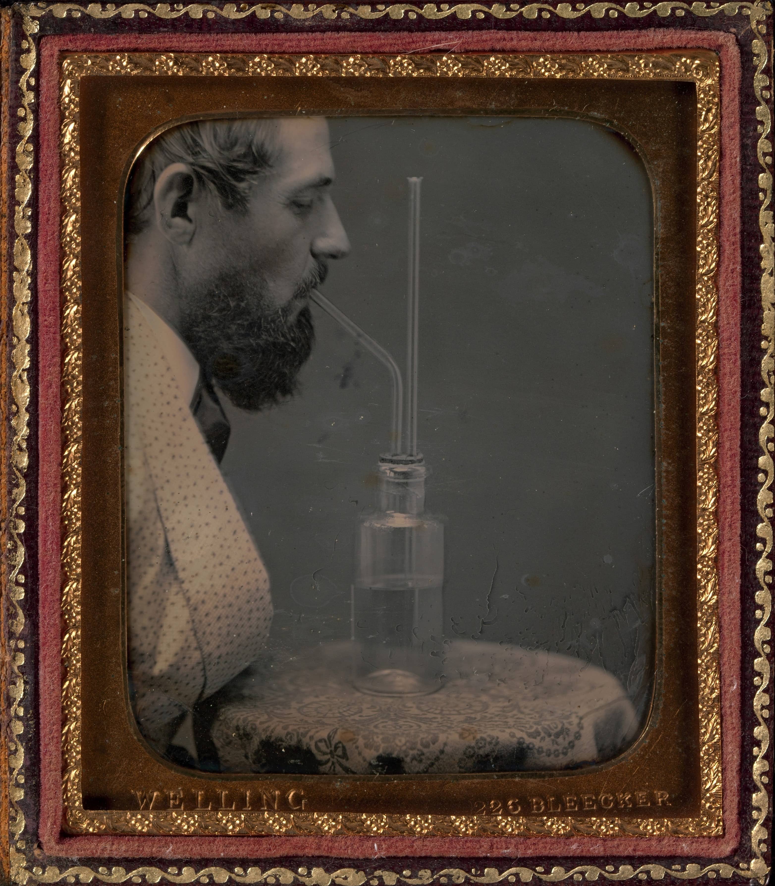 Inhaling Chlorine Gas Daguerreotype, image 6.9 x 5.6 cm, by Peter Welling, 1850–55 The Metropolitan Museum of Art, New York |