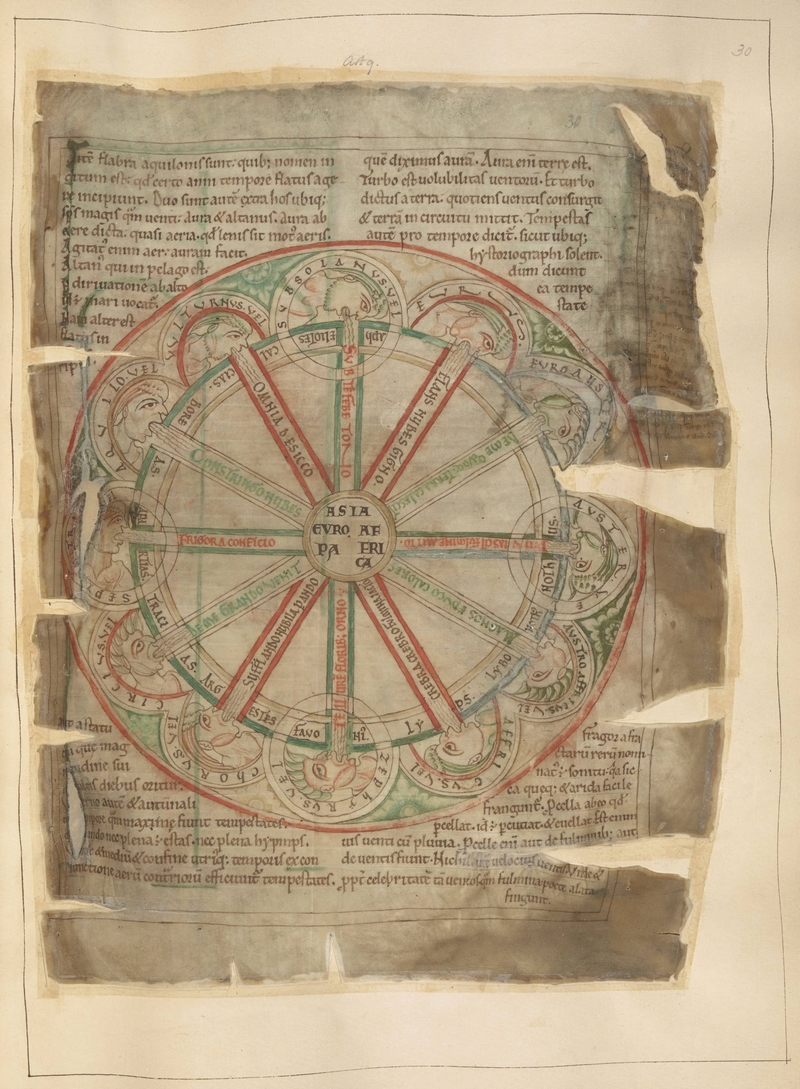 Rota of the Twelve Winds Coloured inks and washes on parchment, from Cotton MS Tiberius E IV, f. 30r, c. 1125 The British Library |