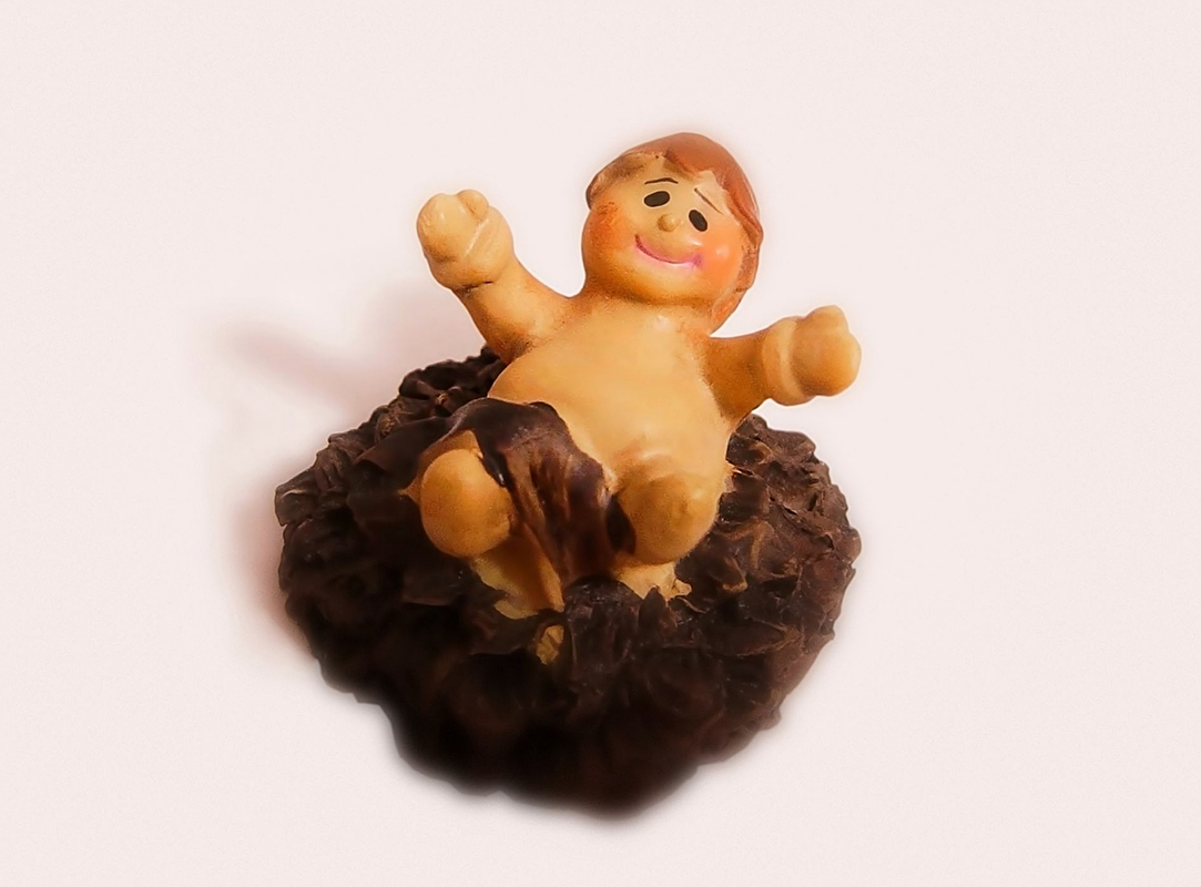 The baby Jesus in his crib From a Christmas nativity scene, terracotta, 20th century