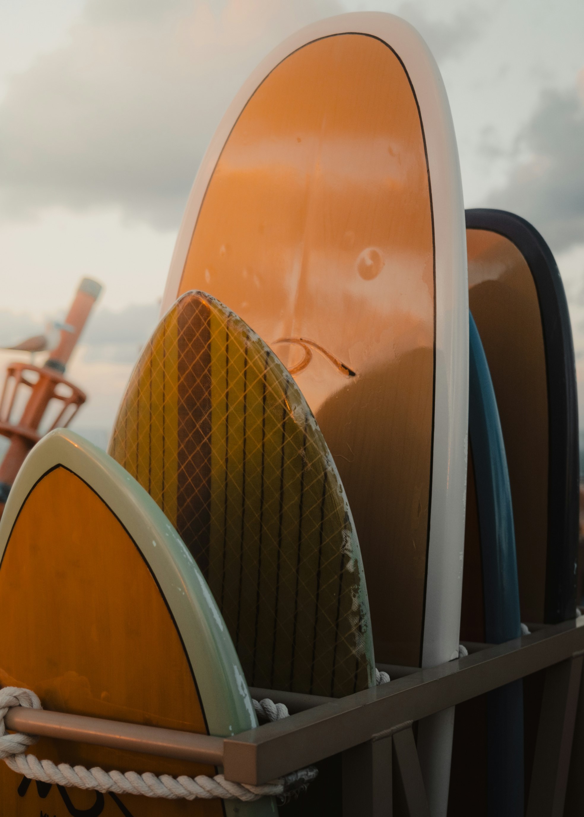 Surfboards gleaming softly