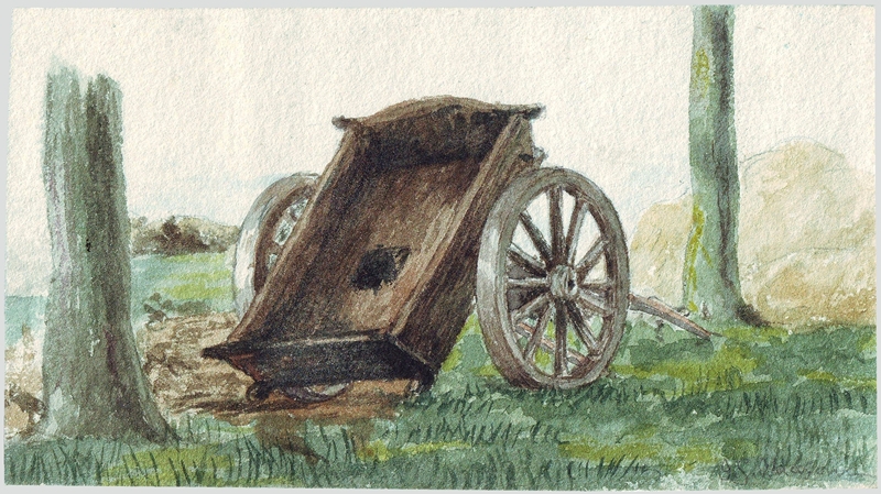 The Weathered Cart Watercolour and pencil on paper, 12 x 6.5 cm, by James Simpson Alderson (1856–1948) Private collection |