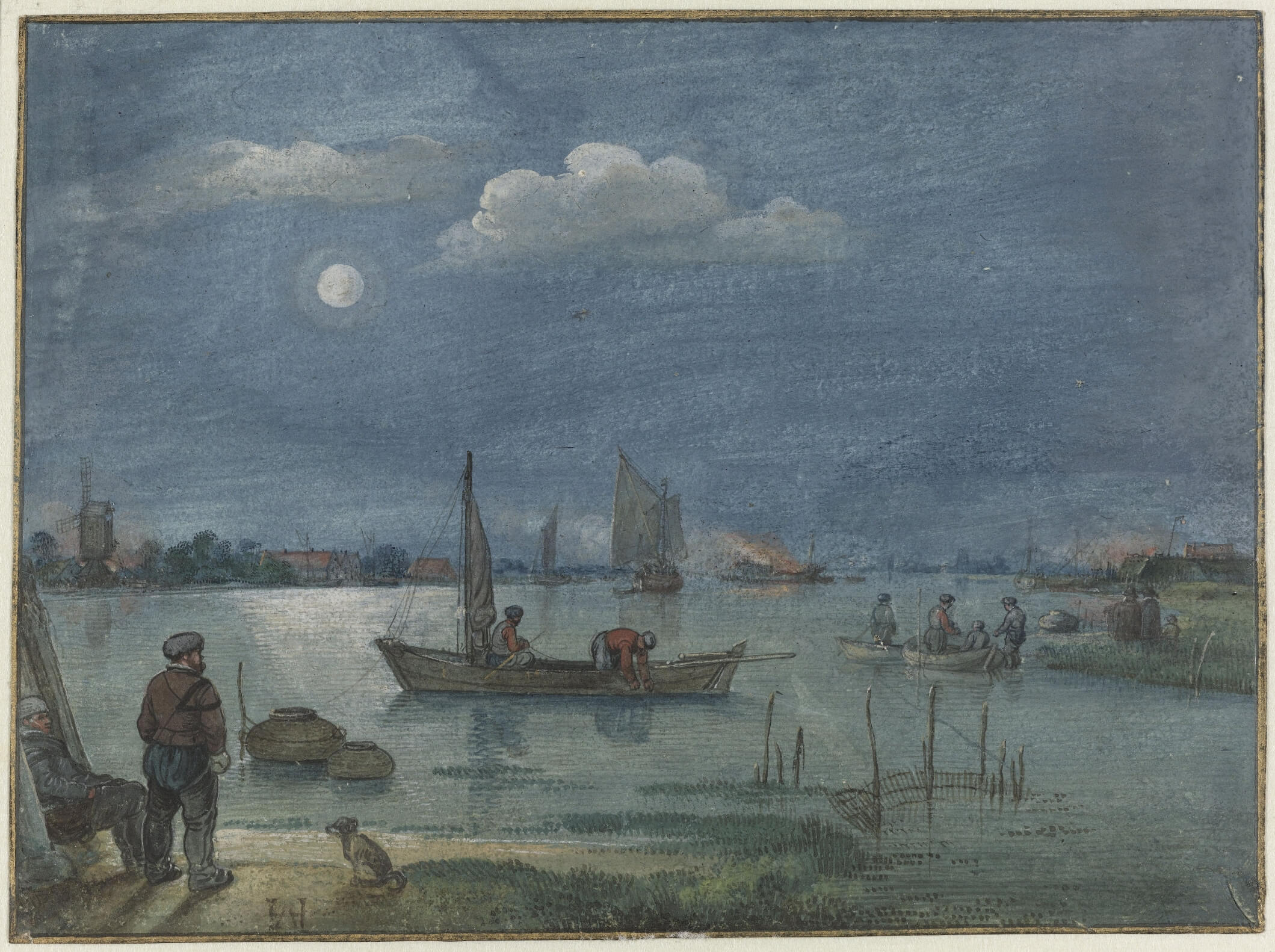 Fishermen by Moonlight Brush and drawing on paper, by Hendrick Avercamp (1585-1634) Rijksmuseum