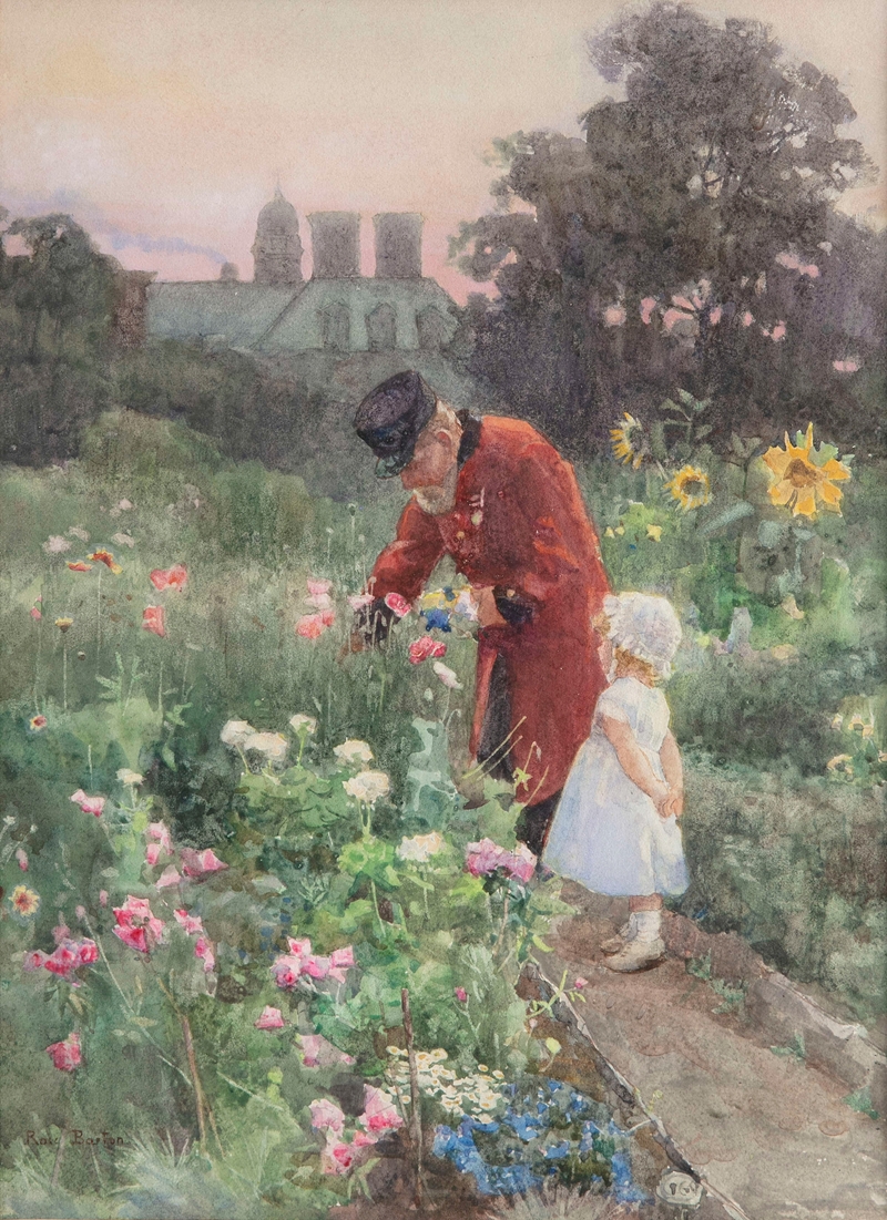 | Celebrating care, memory, and the continuity of life, an elderly Chelsea Pensioner tends a garden as a child watches, reflecting the passing of values, experience, and gentle wisdom from one generation to the next. |