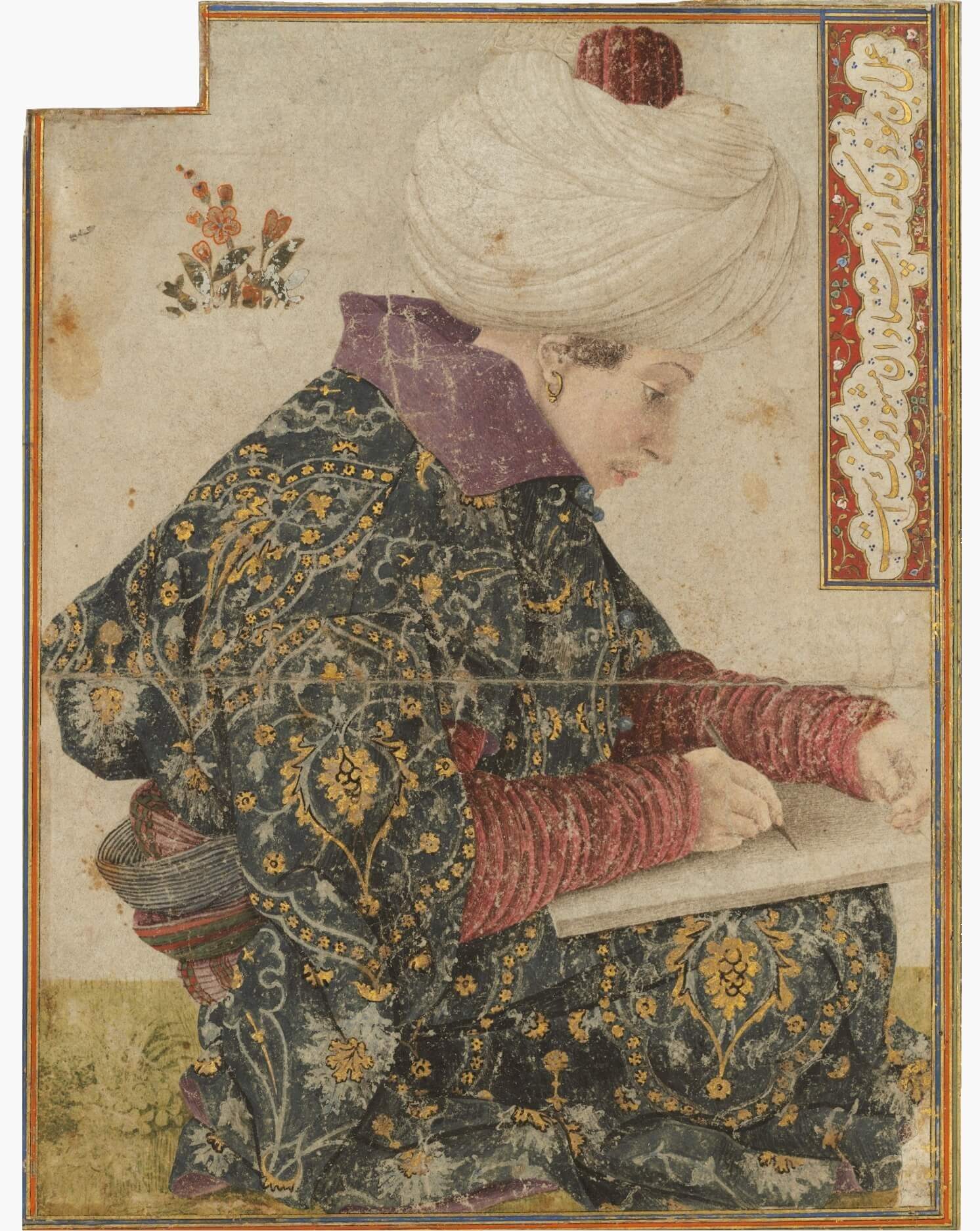 Seated Scribe Pen in brown ink with watercolour and gold on paper. Attributed to Gentile Bellini, c. 1479-80 Isabella Stewart Gardner Museum.