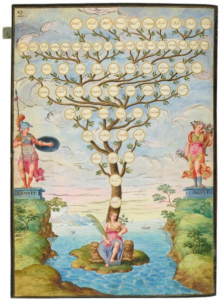 Magius: family tree Gouache on paper, by various artists, including Paolo Veronese