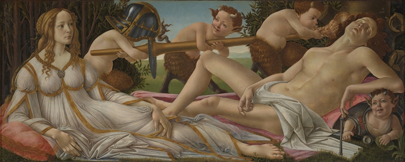 Venus and Mars Egg tempera and oil on wood, 69.2 x 173.4 cm, by Sandro Botticelli, c. 1445–1510 The National Gallery, London |