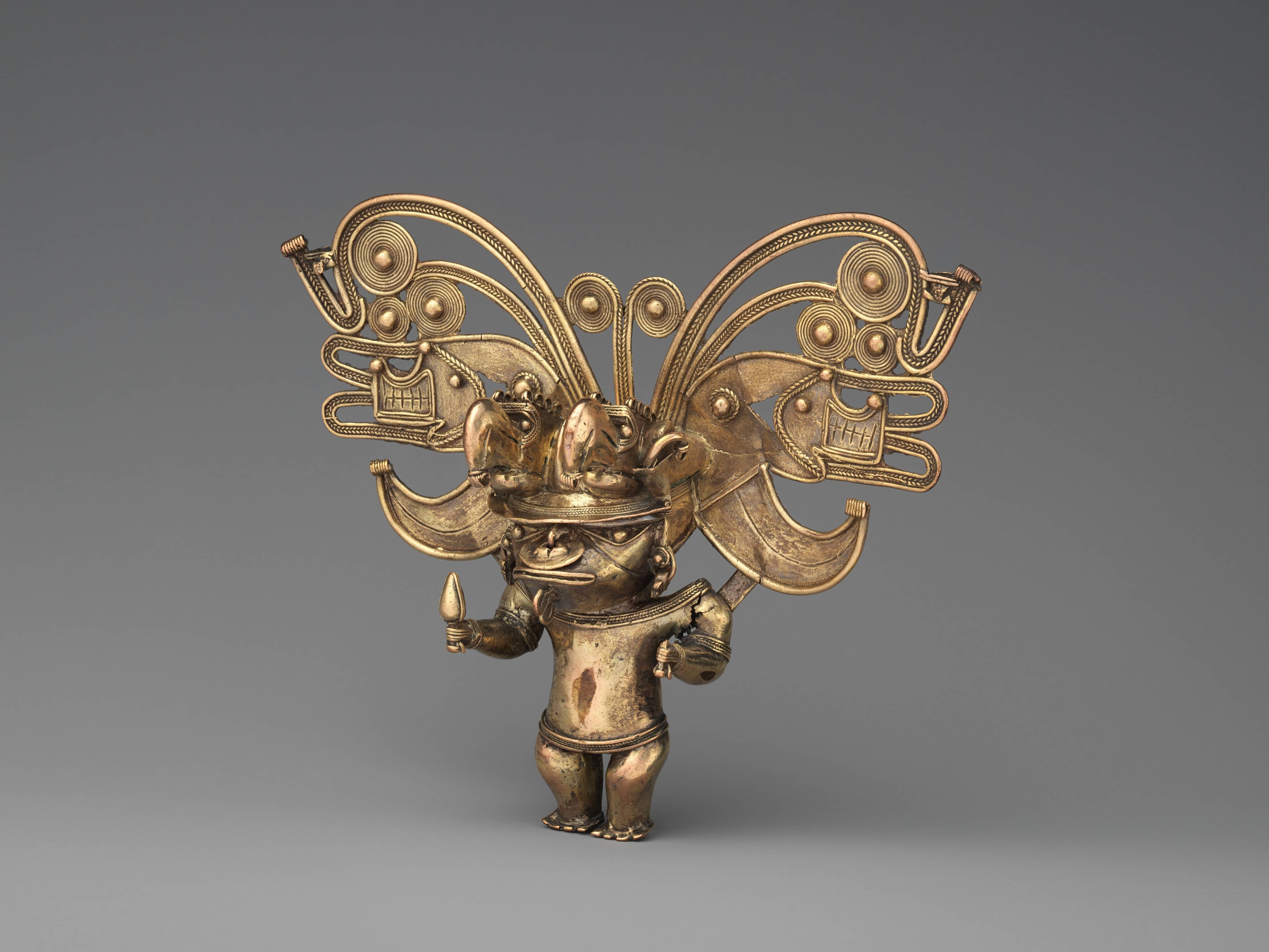 Gold figure pendant Gold, 13.7 x 16.8 x 5.1 cm, Tairona artist, between 900–1600 The Metropolitan Museum of Art |