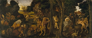 | Piero di Cosimo, the Florentine painter born Pietro di Lorenzo, is best known by the name he acquired from his time working in the bottega of Cosimo Rosselli. His work reflects influences from various artists, including Filippino Lippi, Luca Signorelli, Leonardo da Vinci, and, more recently suggested, Hugo van der Goes, whose Portinari Altarpiece helped shift Florentine painting in new directions. Through van der Goes, Piero developed an appreciation for landscape and a keen understanding of nature, particularly flowers and animals. This influence is evident in works such as Adoration of the Shepherds. His rich imagination, nurtured during a 1482 journey to Rome with Rosselli, led him to explore classical mythology, creating notable works such as Death of Procris and the Mars and Venus. His later works, such as The Immaculate Conception and Holy Family, reflect a turn towards religious art under the influence of Savonarola. While he didn’t produce much fresco work, Piero's portraiture was highly regarded, with notable examples including the Portrait of a Warrior and the Bella Simonetta. Vasari also mentions his role in designing elaborate pageants and triumphal processions, including one celebrating the triumph of death in 1507. Piero’s work had a lasting impact on his students, including Andrea del Sarto, and his works can be found in major collections. He died in Florence. | ||||||||||