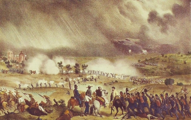 War of Mexican Independence: Battle of Zitácuaro Lithograph by Constantino Escalante (1836-68) |