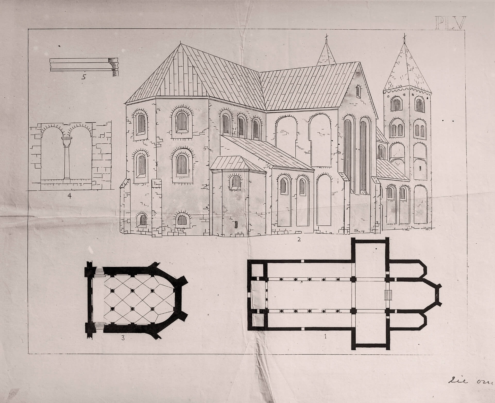 Saint Peter's Church, Utrecht, with map of the church and crypt Lithograph by Frans Nicolaas Marius Eyck van Zuylichem, 1858 Cultural Heritage Agency of the Netherlands