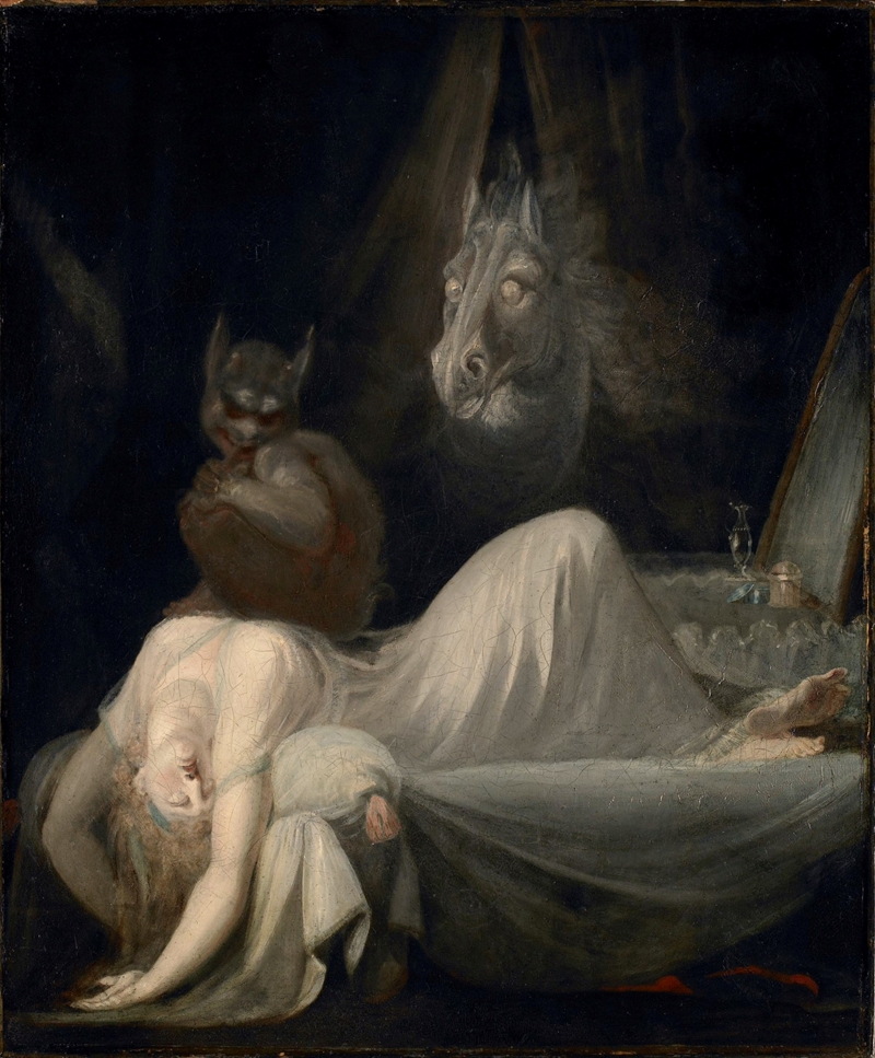 The Nightmare Oil on canvas, 76.5 x 63.6 cm, by Henry Fuseli, 1790–91 Goethe Museum, Frankfurt am Main |