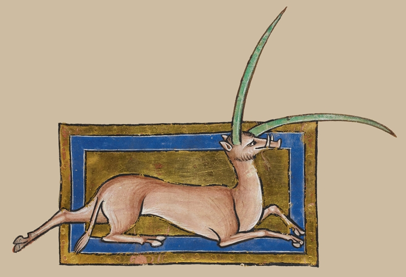 Miniature of a yale (two-horned beast) From the manuscript Royal 12 C XIX, f. 30r, 13th century The British Library, London |