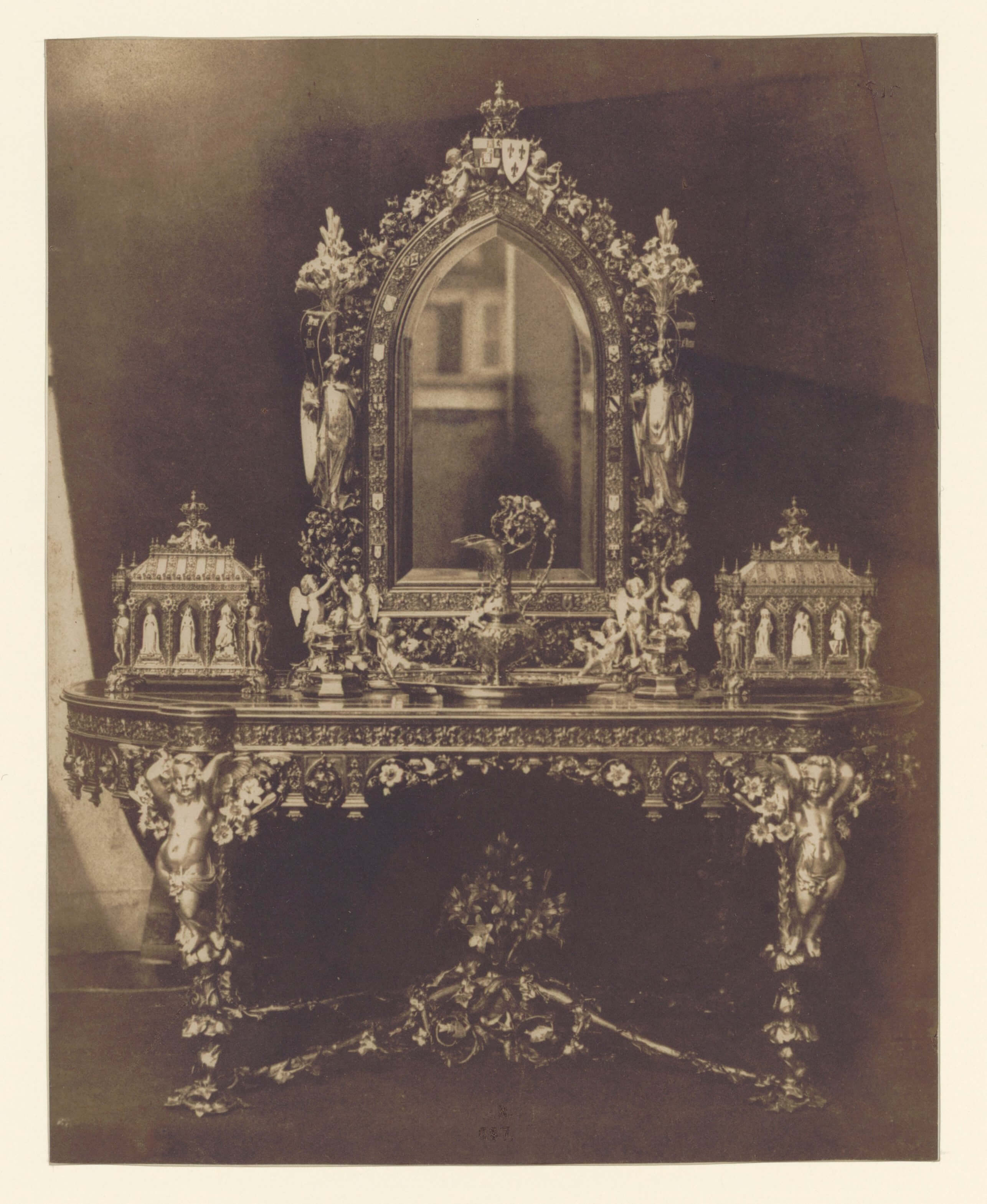 Self-portrait in the mirror of the dressing table of the Duchess of Parma Salted paper print from negative on collodion glass plate, 28 x 20.5 cm, by Gustave Le Gray, published 1851 Bibliothèque nationale de France
