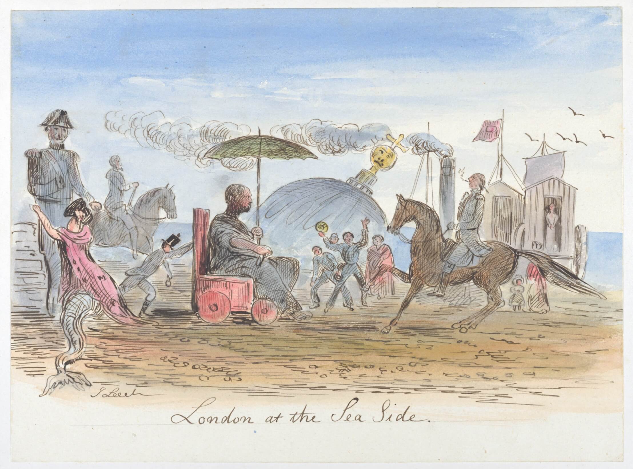 London by the Sea Side Pen, brown ink, and watercolour; by John Leech, after 1830 Metropolitan Museum of Art
