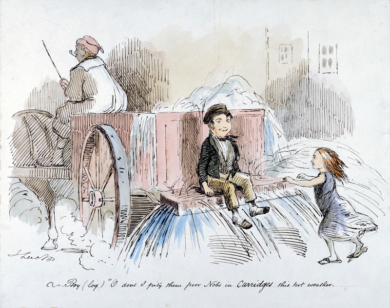 boy enjoys a refreshing ride on the water cart. This is characteristic