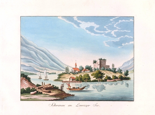 View of the island Schwanau on Lake Lauerz Hand-coloured etching, by Balthasar Friedrich Leizelt (c. 1727–1812) The British Museum, London