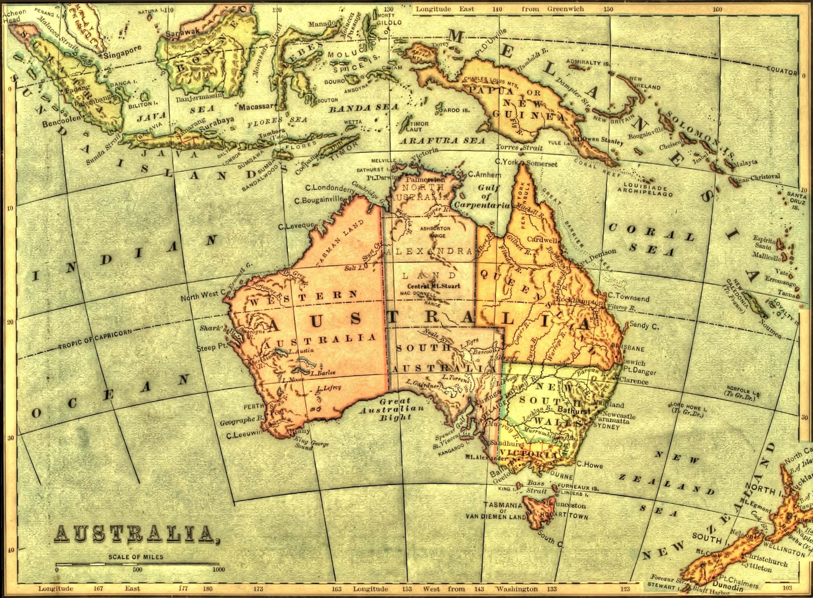 Zealand, and New Guinea, with a large number of smaller islands
