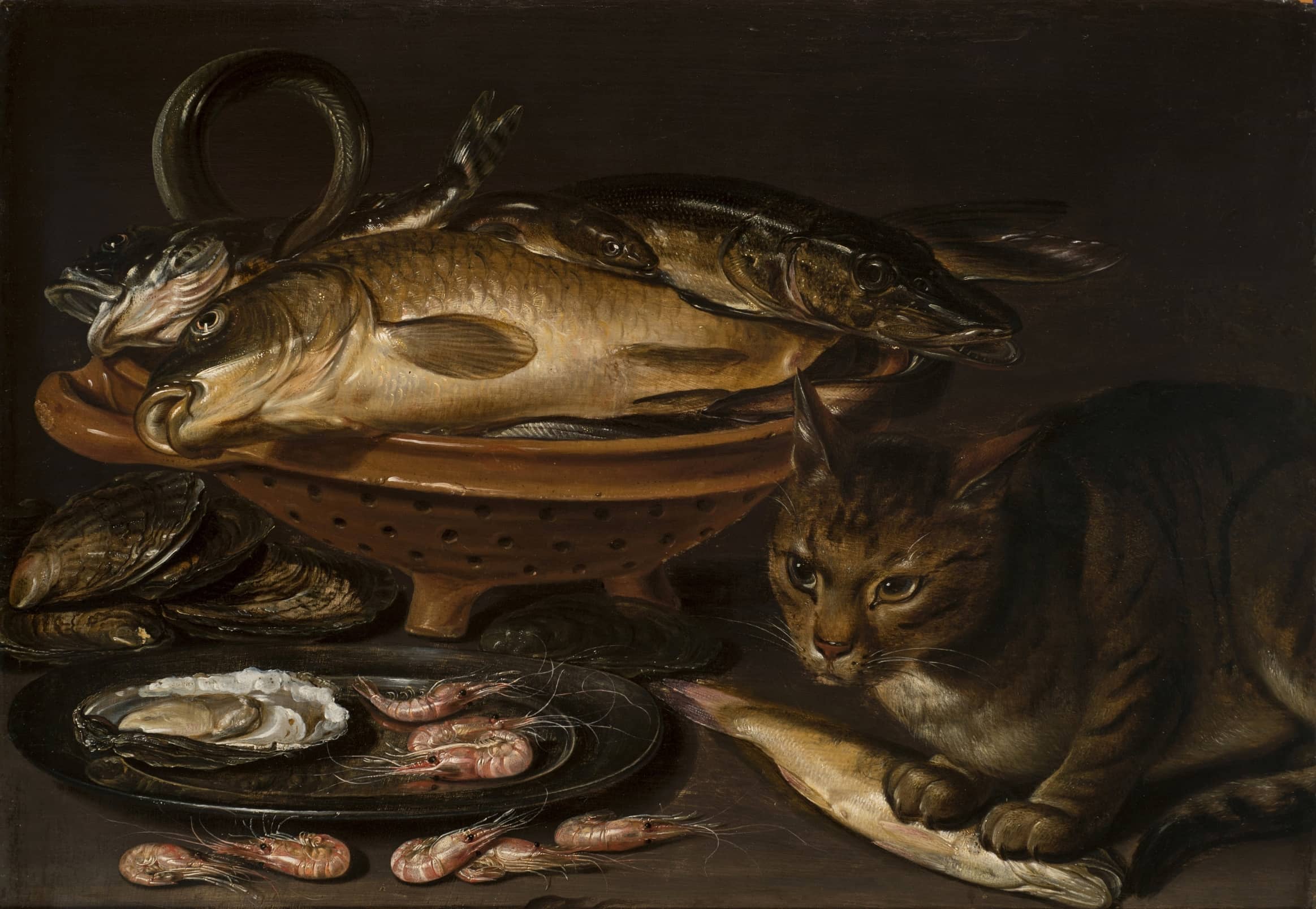 Still Life of Fish and Cat Oil on panel, 34.3 x 47 cm, by Clara Peeters, after 1620 National Museum of Women in the Arts, Washington, D.C. |