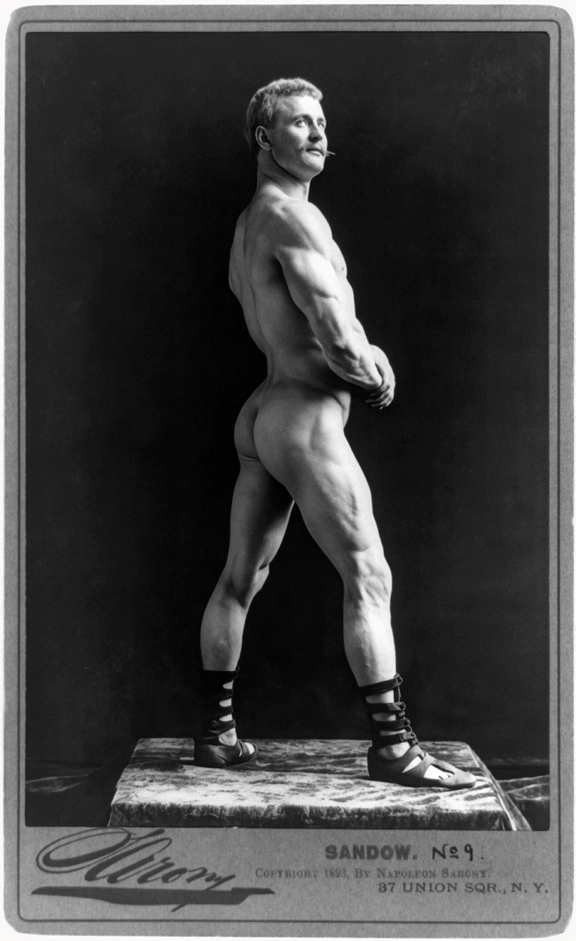 Sandow in Graeco-Roman pose Photoprint on cabinet card, by Napoleon Sarony, c. 1893 Library of Congress, Washington DC |