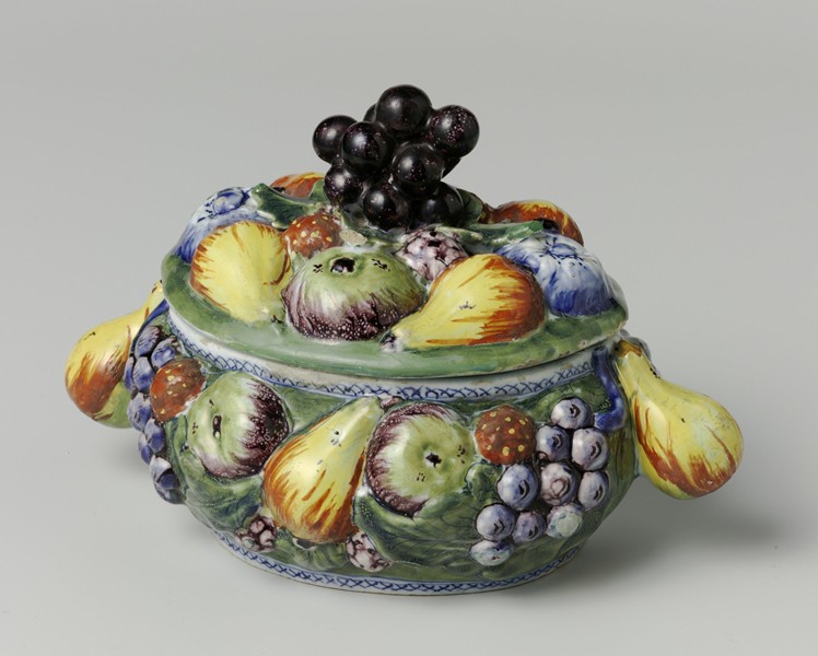 Butter dish with fruit Faience, h. 11.5, w. 17, d. 5.5 cm, by A. De Grieksche, c. 1768-85 Rijksmuseum, Amsterdam