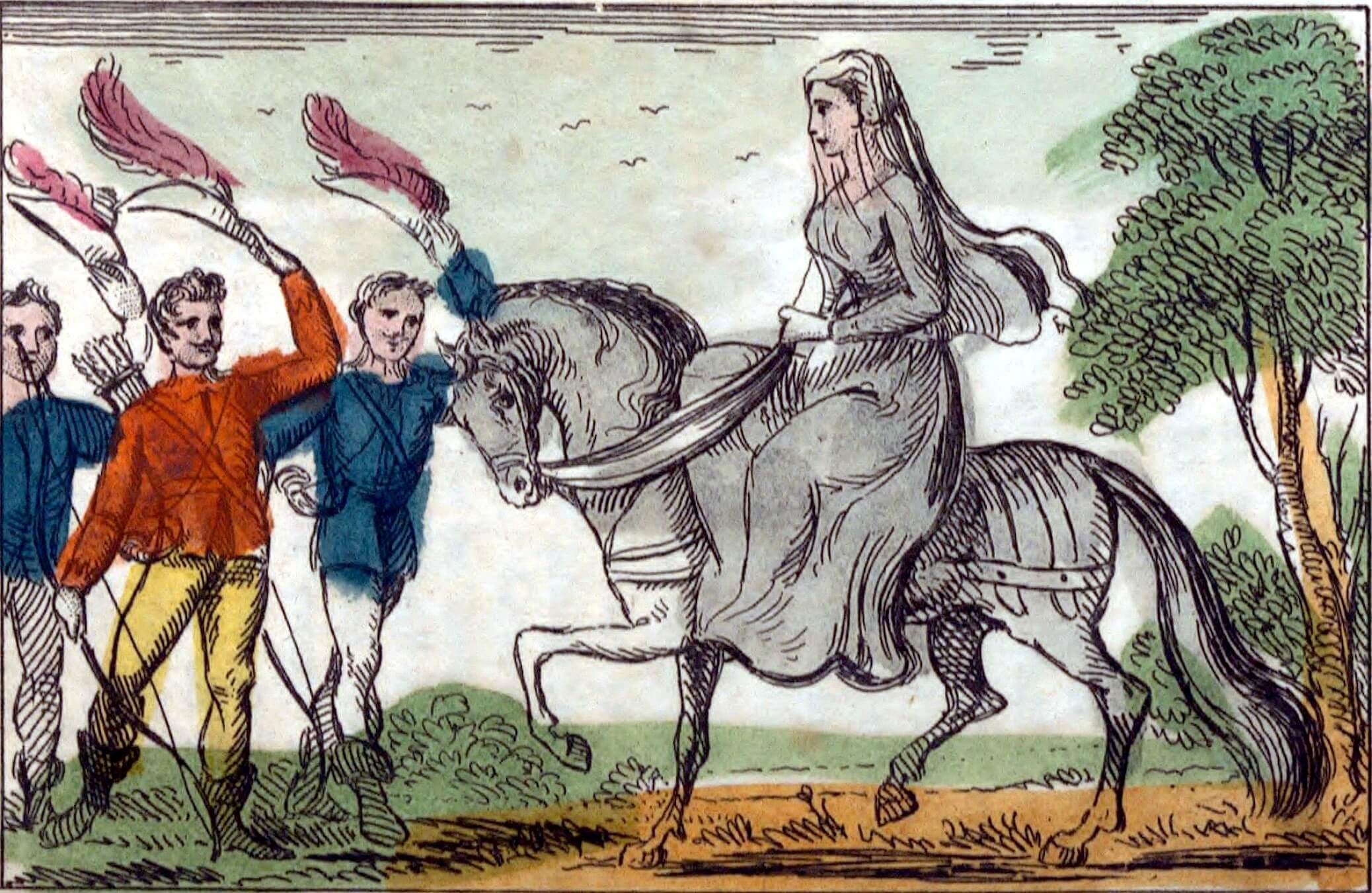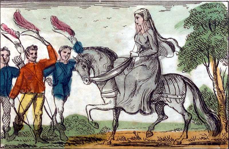 'A beautiful damsel riding on a black palfrey'