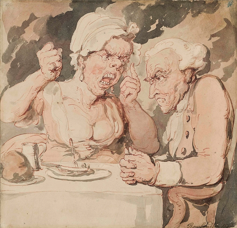 Unholy Matrimony Watercolour, pencil, pen and ink, 46.5 x 22.2 cm, by Thomas Rowlandson, 1821 Location unknown |
