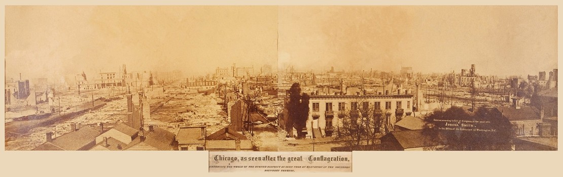 Chicago, as seen after the great Conflagration, embracing the whole of the burned district as seen from an elevation in the southern boundary thereof Albumen photograph print, by Joshua Smith, c. 1871, Library of Congress
