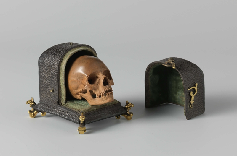 Skull with case Boxwood (skull), copper, and leather; skull h 4 cm x w 3.5 cm x d 5.5 cm, case h 6.5 cm x w 6 cm x d 7 cm By Albert Jansz. Vinckenbrinck, c. 1650 Rijksmuseum, Amsterdam |