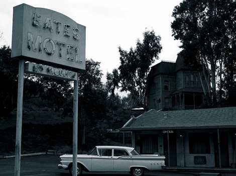 through Janet Leigh's office window, wearing a cowboy hat. |