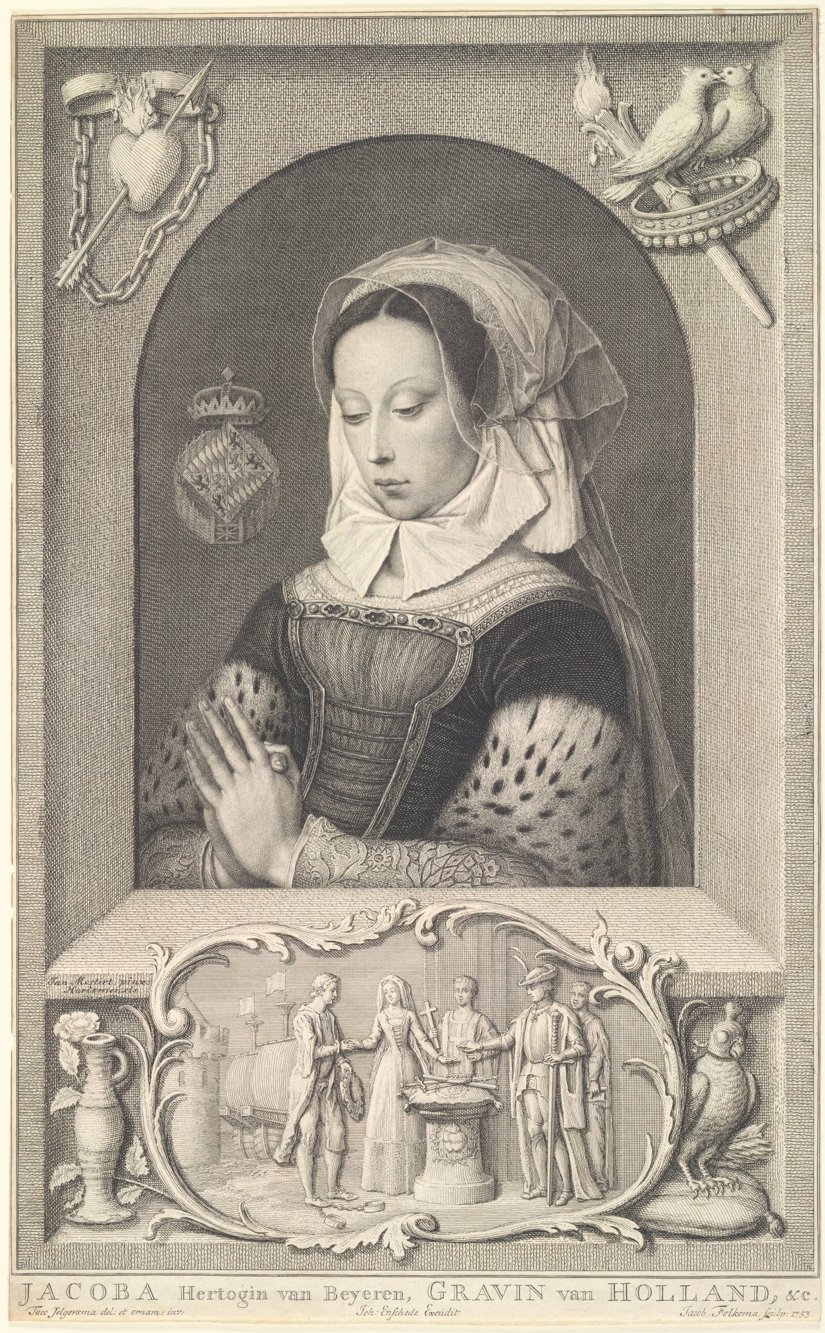 Engraving, 36.3 x 22.4 cm, by Jacob Folkema, 1753
