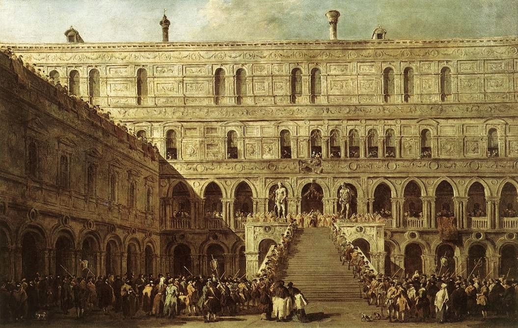 The Coronation of Doge Alvise Mocenigo on the Giant Staircase of Ducal Palace, Venice oil on canvas, by Francesco Guardi, 1766-70, Musée du Louvre