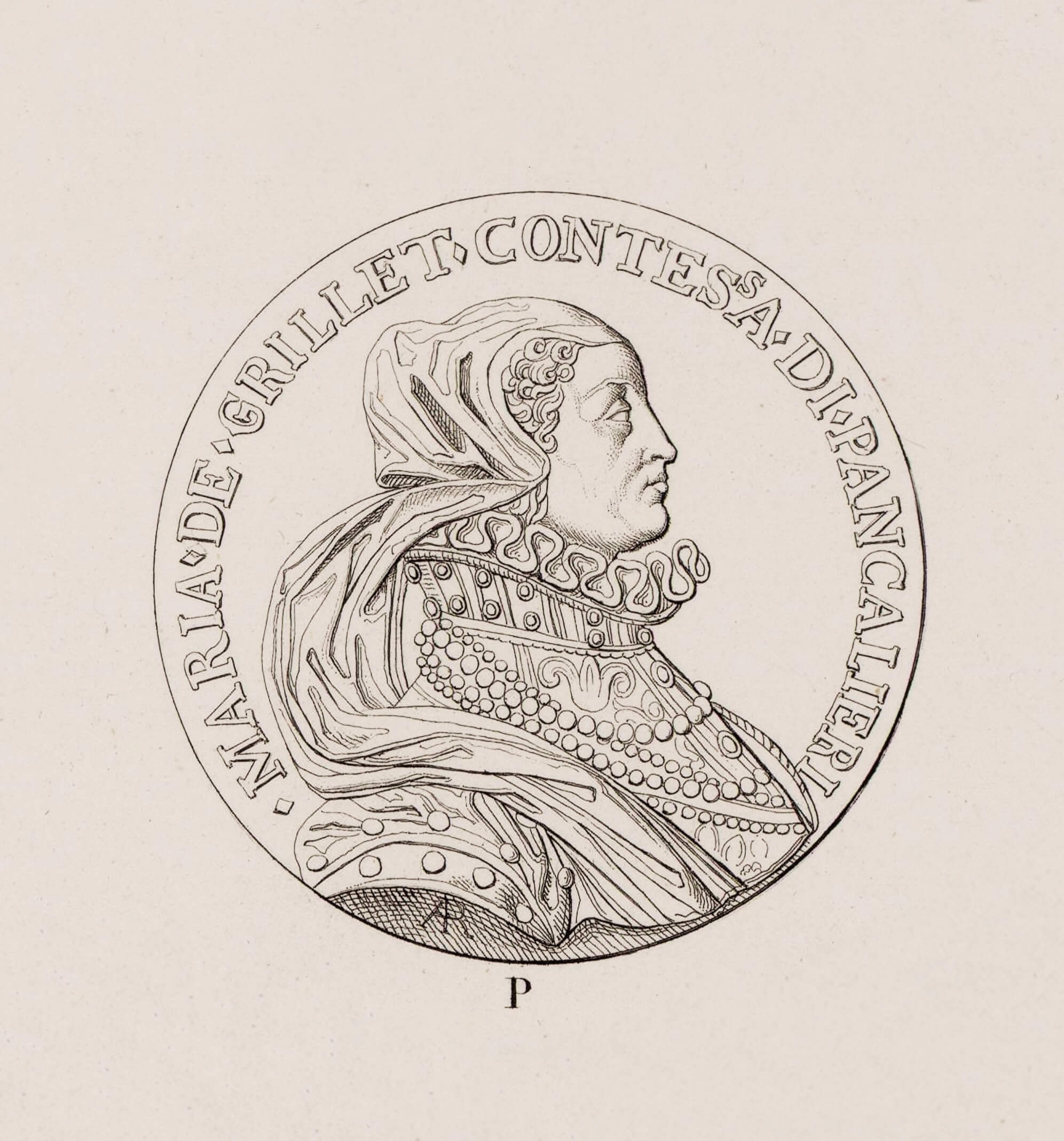 Medal depicting Maria de Grillet (Maria de' Gondi), Countess of Pancalieri Engraving, by Antonio Bramati, published 1819 Bibliothèque nationale de France, Paris