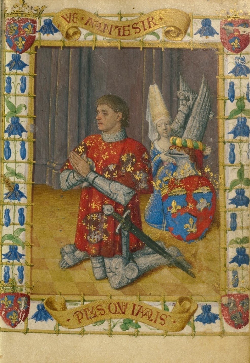 Simon de Varie Kneeling in Prayer by Jean Fouquet, 1455, from the Hours of Simon de Varies, J.P. Getty Museum