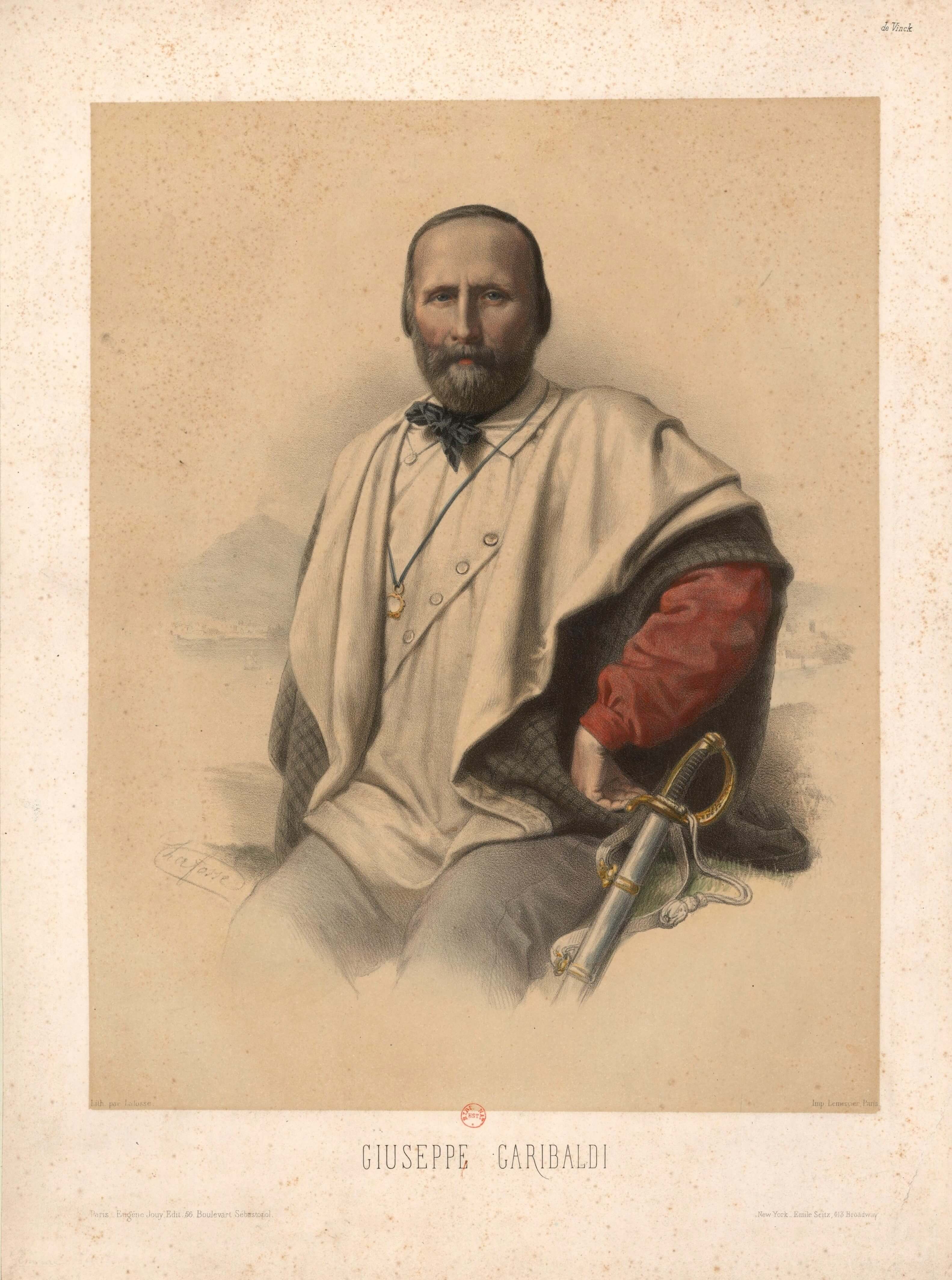 Giuseppe Garibaldi Coloured lithograph, by Jean-Baptiste-Adolphe Lafosse (1810?–79) Bibliothèque nationale de France
