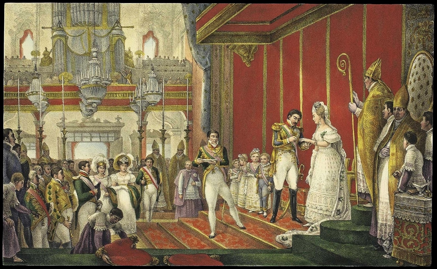 Wedding of Pedro I, Emperor of Brazil, and Princess Amélie de Beauharnais de Leuchtenberg Engraving by Thierry Frères, 1839, Biblioteca Nacional de Brasil