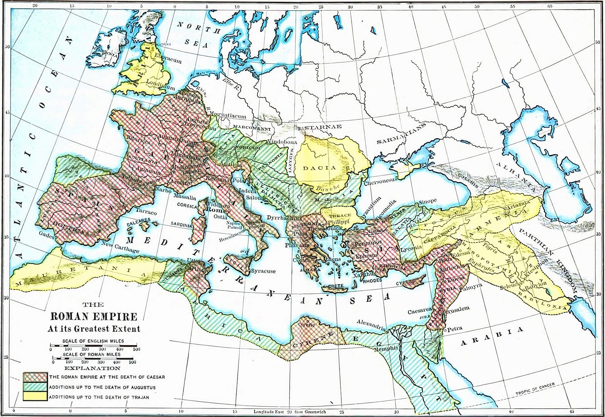 The Roman Empire at its Greatest Extent (44 BC, AD 14, AD 117)