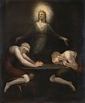 Cleopas (1st C.) Other names: Cleophas Biographical The biblical figure Cleopas is mentioned only in the Gospel of Luke, in the account of the Road to Emmaus appearance of Jesus (Luke 24:13-32). He is one of two disciples who are walking to Emmaus, a village over the hills from Jerusalem, on the day of Jesus' resurrection. They are discussing the events of the previous days, and how Jesus had been crucified, but then had risen from the dead. As they are walking, Jesus joins them, but they do not recognise him. He asks them what they are talking about, and they tell him about their hopes that Jesus was the Messiah who would deliver Israel. Jesus then begins to explain the Scriptures to them, showing them how they all point to his death and resurrection. When they arrive at Emmaus, the disciples invite Jesus to stay with them. As they sit down to eat, Jesus breaks bread and gives thanks. At that moment, the disciples' eyes are opened and they recognise him. He then disappears from their sight. Luke does not mention the identity of Cleopas' companion, and nothing is known with certainty of Cleopas. He has been identified with Clopas, due to the similarity of the name, but without any evidence. The location of Emmaus is likewise not known. The old Roman Martyrology stated that he was martyred in his residence at Emmaus by the Jews, but there was no evidence to support this. His feast day is the 25th of September. |
