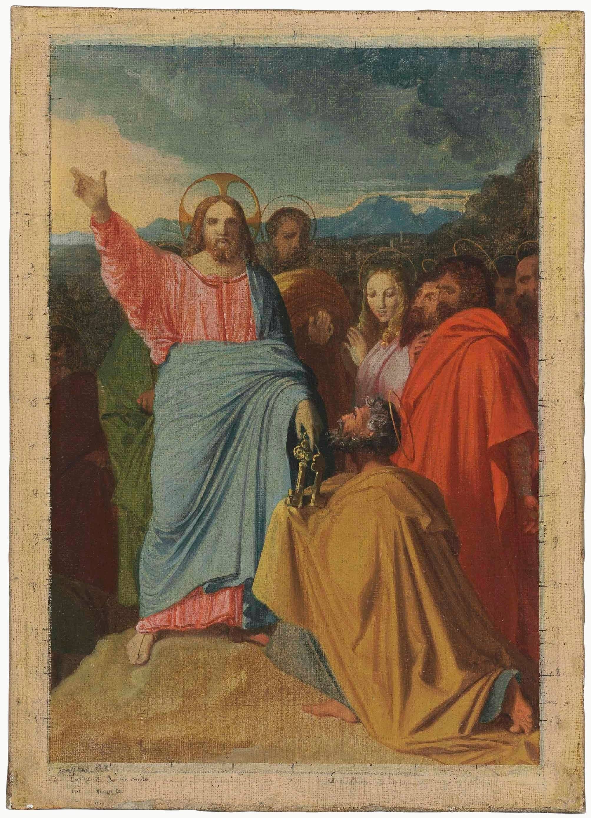 Christ delivering the Keys to St Peter Oil on canvas, 29.8 x 21.5 cm, by Jean-Auguste-Dominique Ingres, c. 1817–1818 Location unknown