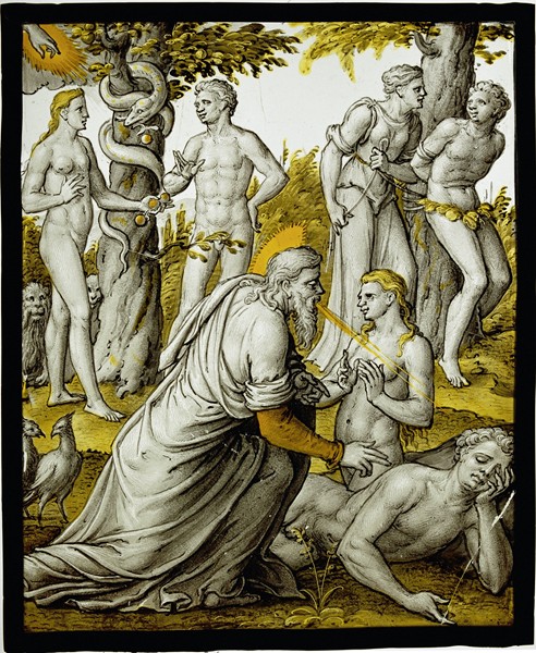 The creation of Eve and the Fall of man Stained-glass, 25.4 x 20.9 cm, anonymous (Gouda), c. 1560–c. 1570 Rijksmuseum, Amsterdam