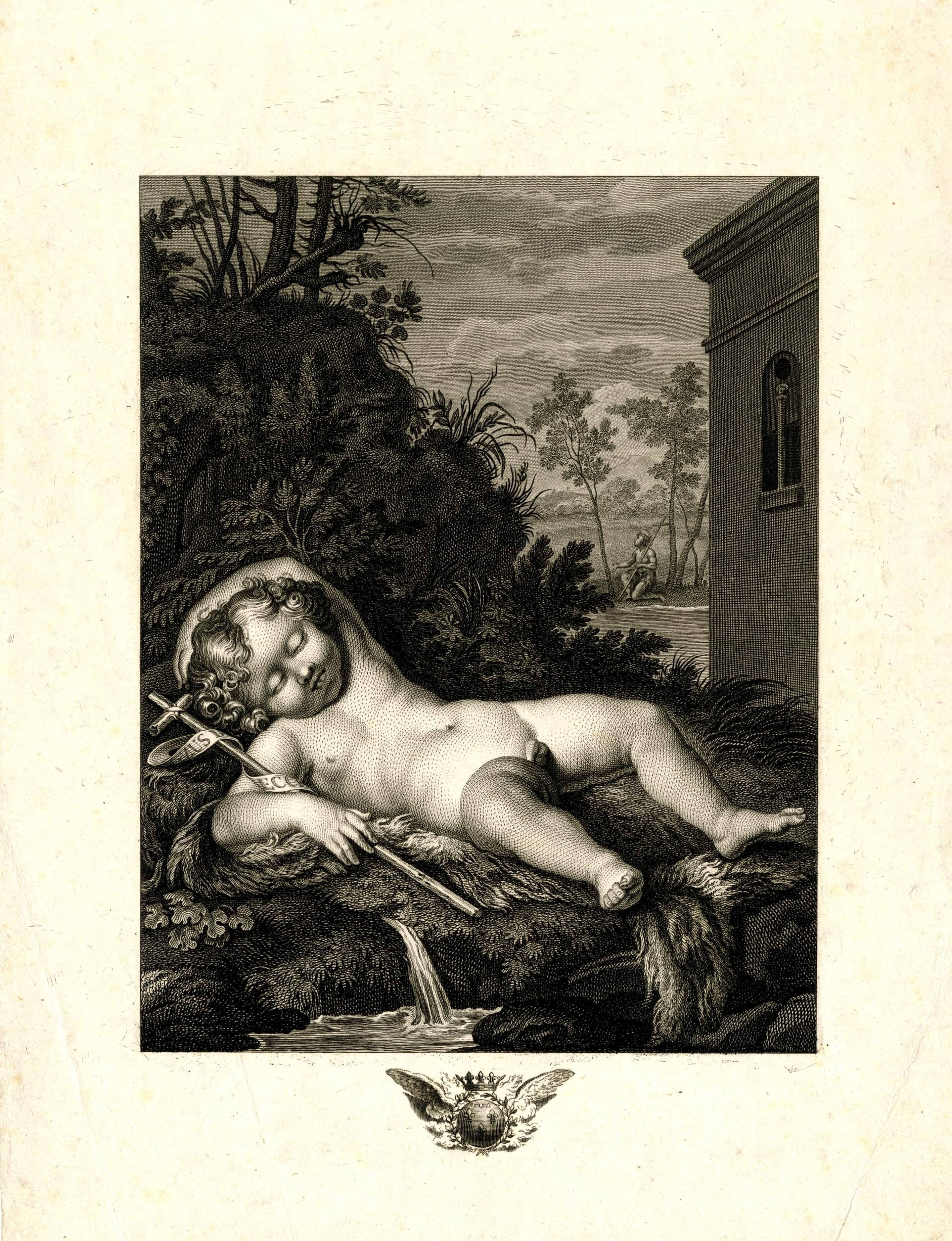 The infant Saint John the Baptist sleeps naked on a bed of vegetation,