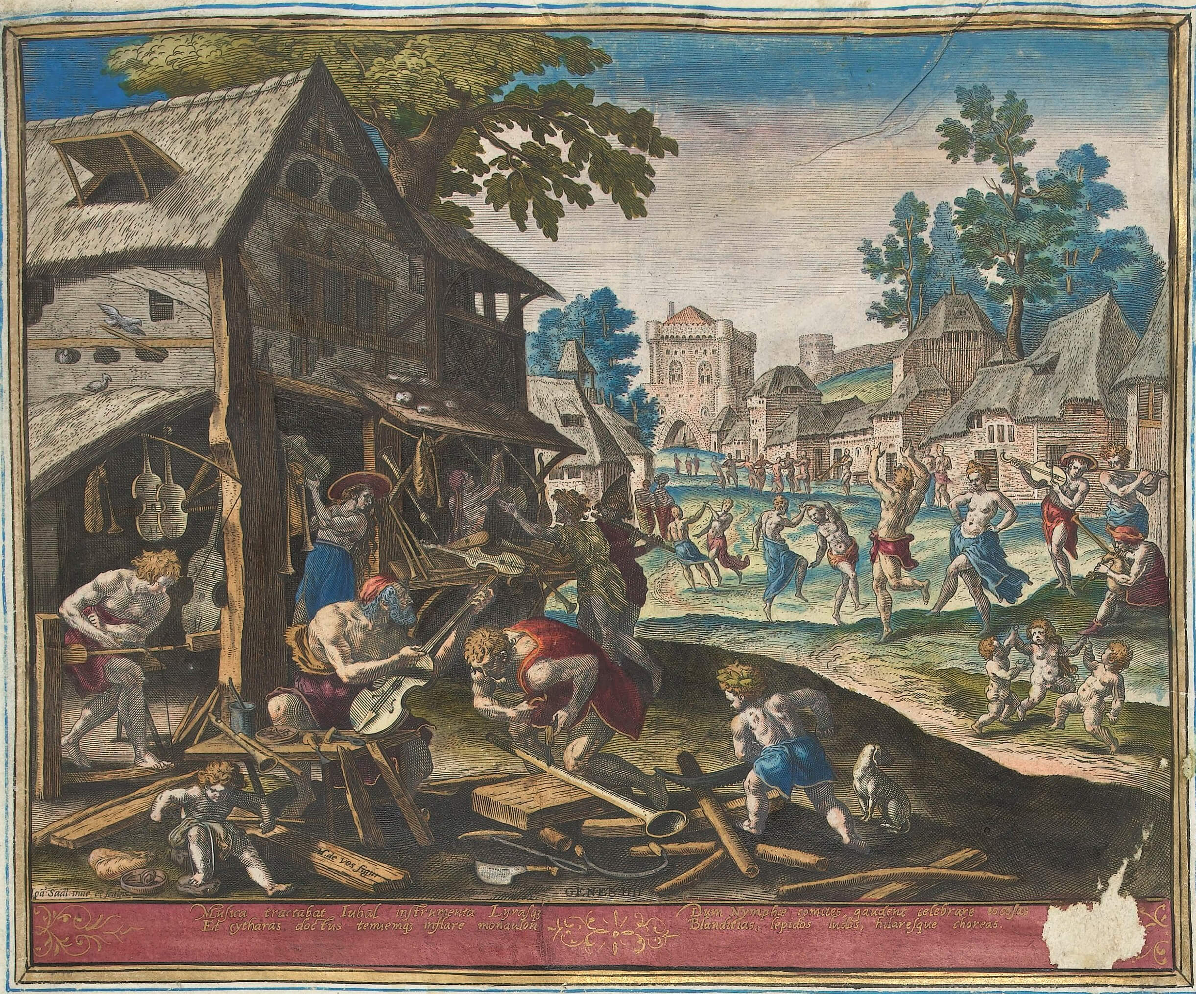 Jubal and his Family make Musical Instruments Engraving, by Johann Sadeler (I), after Marten de Vos, 1583 Rijksmuseum, Amsterdam
