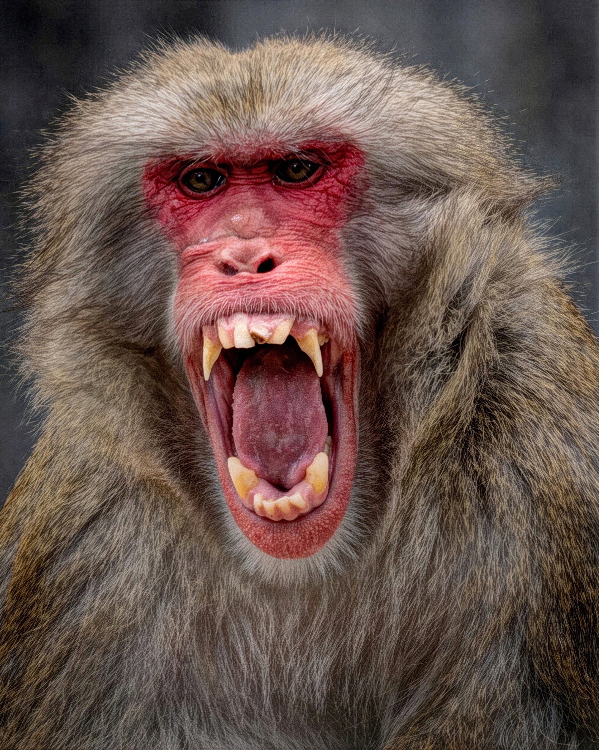 | Macaca fuscata is an Old World monkey native to Japan, inhabiting forests across the islands, including regions where snow remains on the ground for much of the winter. Its thick brownish fur enables it to endure low temperatures, and it lives in structured social groups, with some populations observed sitting in hot springs during the colder months. They can be aggressive within their own troops, and although they have become accustomed to humans in some areas, particularly where food is involved, they may at times behave boldly or even aggressively. |
