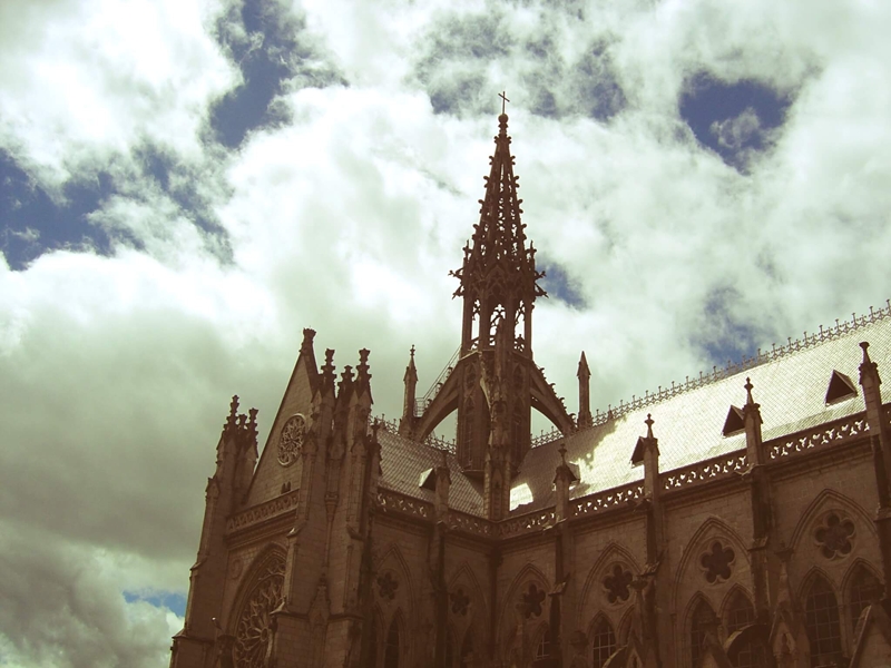 | The basilica the largest neo-Gothic structure in the Americas, with construction starting in 1892, although it remains unfinished. It is inspired by the design of Notre-Dame de Paris, with its architects drawing heavily from the French Gothic style, particularly the grand scale and soaring spires characteristic of the famous cathedral. Its architectural grandeur is marked by pointed arches and intricate stone carvings, all emblematic of the neo-Gothic style. One of the most distinctive features of the basilica is its gargoyles, which are not traditional European figures but are instead inspired by Ecuadorian wildlife. Sculptures of armadillos, condors, and turtles reflect the country’s rich natural heritage, setting the basilica apart while still adhering to the architectural principles of French Gothic cathedrals. |